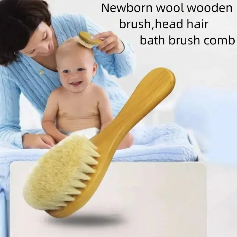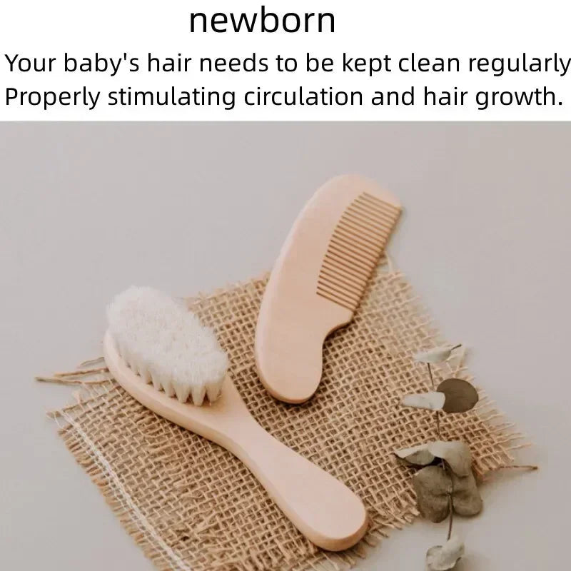2PCS Newborn Wool Baby Wooden Brush Comb Newborn Hair Brush Infant Head Massager Portable Comb Hair Bath Brush Comb