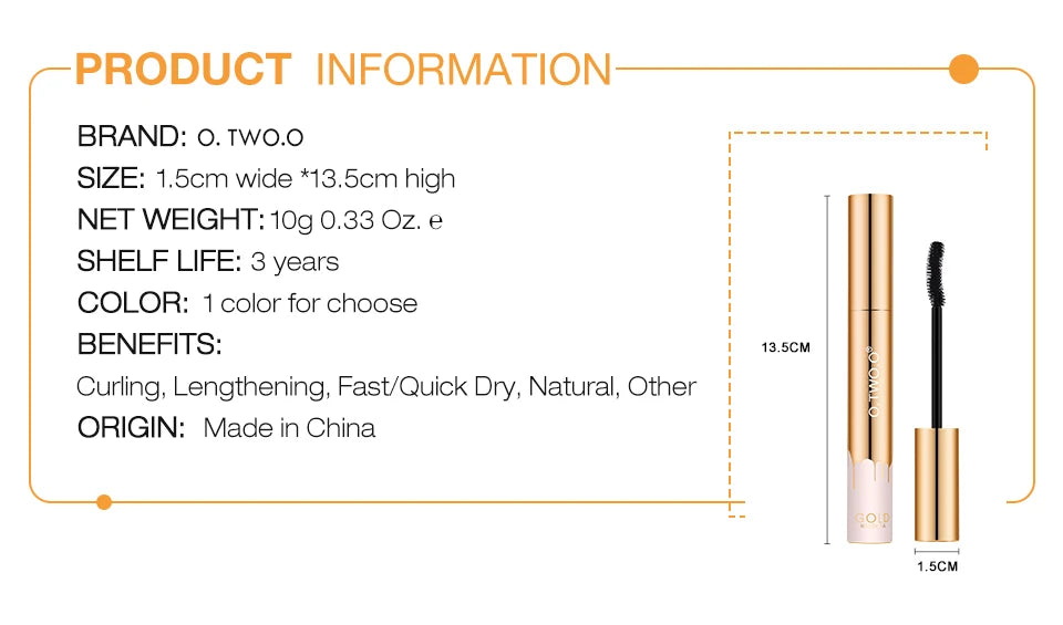 O.TWO.O 3D Mascara Lengthening Black Lash Eyelash Extension Eye Lashes Brush Beauty Makeup Long-wearing Gold Color Mascara